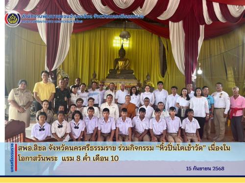 วันที่ 15 กันยายน 2568 เวลา 09.00 น. ณ วัดชลคีรีวนาราม หมู่ที่ 7 ตำบลสี่ขีด อำเภอสิชล จังหวัดนครศรีธรรมราช